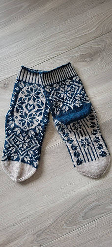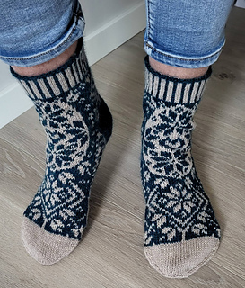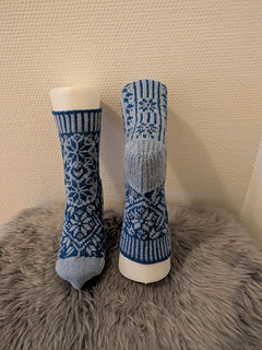 med en strikkefasthet på 30 m / 10 cm vil du få ca. str 40-42 anbefaler at du velger farger med litt kontrast da det er mange små detaljer.