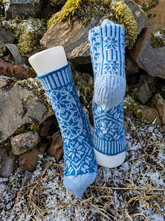 Fjærlesten strikkes på pinne 2,5 eller 3 mm.