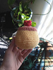 You can easily make three or four flan bases with a skein of Soft and Shiny or equivalent yarn. Brown or a caramel colored secondary yarn should be used for the top, but uses an insignificant amount of it. The same can be said for the red raspberry.