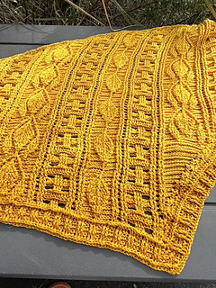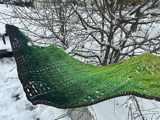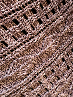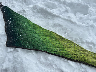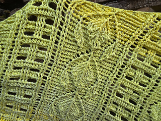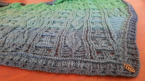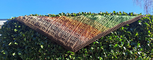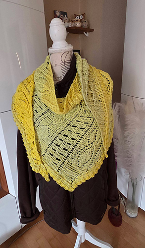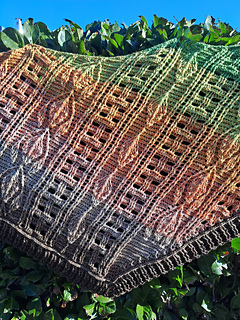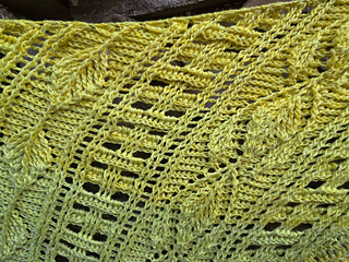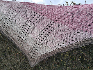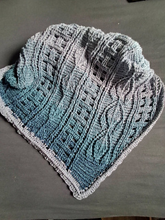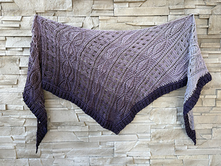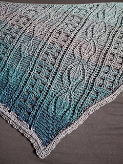 Playful leaf tendrils, an enchanting braided pattern—a beautiful, asymmetrical shawl: that’s Larisaia!