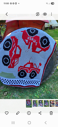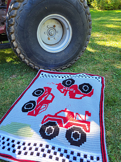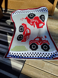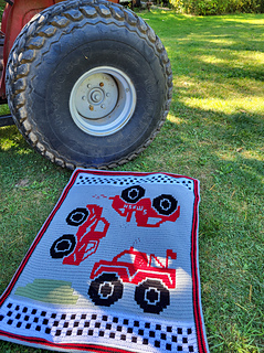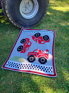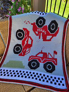 Flippin’ Trucks is a picture blanket. It is 115 stitches x 148 rows, a perfect smaller blanket for that special little someone who loves Monster trucks, or any trucks. It can be done in traditional or tapestry mosaic. Finished size is approx. 34” x 44”.