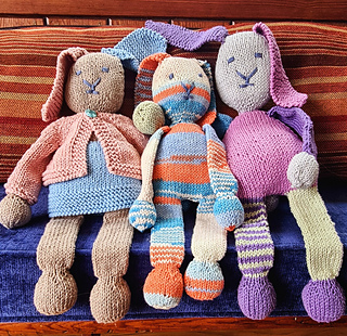 These cute little rabbits can be knit in one piece, seamlessly or knit flat and seamed.