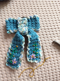 - This hair bow has an interesting part with beautiful embroidery details.