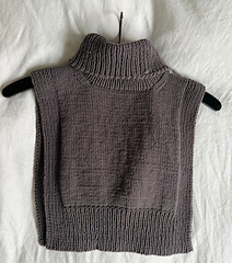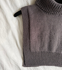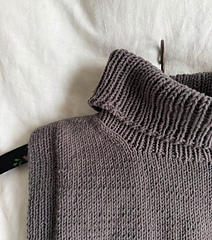Flora Neck strikkes fra rygstykket op mod skuldrene, og ned over forstykket. Der strikkes åbning til hovedet, hvor masker til sidst samles op til rullekraven.