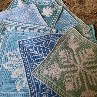 De 6 patronen zijn vierkant en te haken vanuit het midden óf in rijen van onder naar boven. Net wat je zelf wilt. De blokken zijn symmetrisch, dus voor linkshandigen zijn de instructies gelijk.