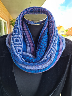 I opskriften er der en udførlig billedbeskrivelse på mosaikhækling af tørklædet.