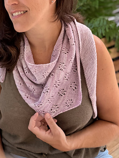 The Floresta scarf is an asymmetrical triangular scarf worked sideways from the left tip to the right long edge. The first part is worked in garter stitch followed by a delicate and simple lace section.
