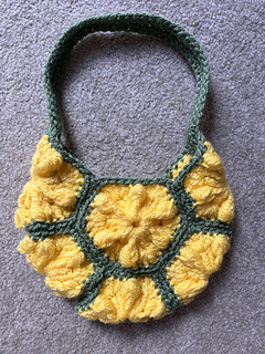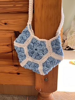 Each hexagon features a delicate flower design, bringing a soft, handmade feel to the overall look. With a simple handle and an easy construction, it’s a fun and portable project that works up quickly. Perfect for kids, for a gift or for yourself the Florin Bag is a lovely way to carry a touch of handmade charm with you.
