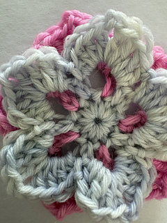 This is a pattern for a crochet flower using oddments of double knitting yarn