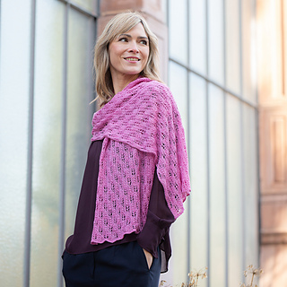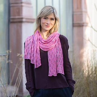 The FLOWER STOLE is worked flat throughout in an elegant blossom pattern. The blossoms are created using yarnovers and decreases. The motif is framed by sections of stockinette stitch, and a selvedge stitch is worked along both edges.