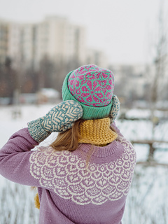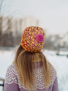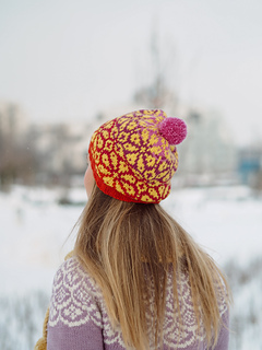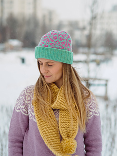 A charming and cozy hat featuring a floral colorwork pattern, perfect for adding a touch of beauty and joy to your everyday wardrobe!