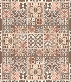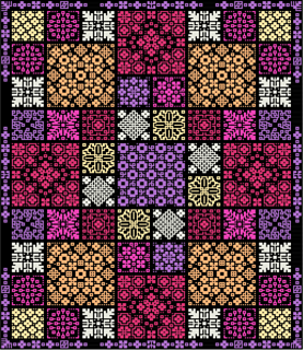 8 kleine blokken breed en 10 kleine blokken hoog plus een rand van 9 toeren.