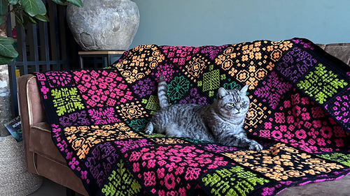 Het totale patroon bestaat uit 53 blokken en een rand die een deken van ongeveer 135 cm x 170 cm maken (met DK garen en een 4mm haaknaald). Je kunt met de patronen natuurlijk ook een kleiner project maken.