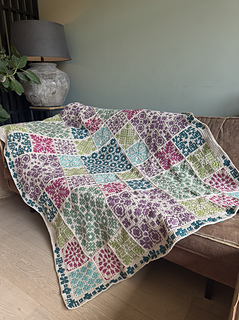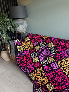 The total pattern has 53 squares and a border and creates a blanket that measures approximately 135 cm x 170 cm (with DK yarn and a 4mm hook). You can also choose to make less or different squares to create a different project.