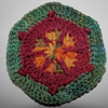 (shown in fingering yarn and worked with a 2,5 mm hook; size corner-to-corner 9 cm, side-to-side 8 cm)