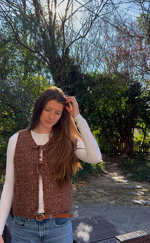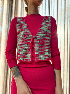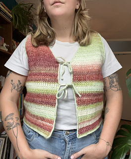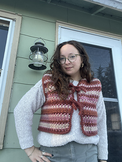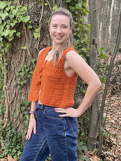 You can use the pattern to create your own Flowy Vest! The Flowy Vest is a reversible v-neck vest with ties and a textured fabric. This pattern is made to measure, which means it can be made with any yarn and hook size and you do not need to crochet the same gauge. It can be adjusted to any body type. You can also choose how long you want your vest to be, it is worked top down and in one piece.
