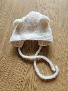 Fluffy Bamsekyse strikkes frem og tilbake i glattstrikk, der ørene strikkes inn underveis. Kysen har en god passform, og varmer godt for små ører.