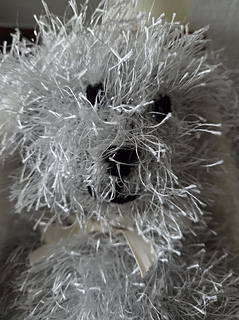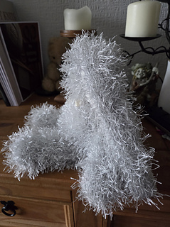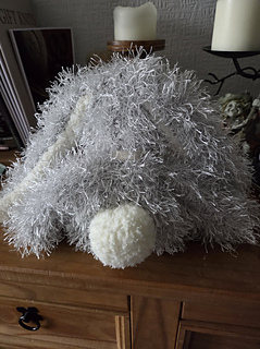 Fluffy Bunny has been made using 2 different yarns to give his inner ears and tail a different feel and look. Any brands of yarns can be used and for this toy, the gauge (tension) really doesn’t matter as there are no specific fittings to each piece.