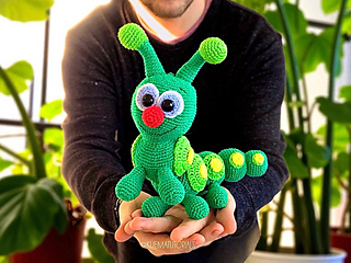 Cutti the fluffy caterpillar, is a beautiful large and decorative caterpillar for your home. Not only does she look adorable, she also brings her little caterpillar kids with. With this crochet pattern you can crochet this big mama caterpillar with a body length of over 12 in (30 cm), and of course the little ones too (free of charge). I wish you a lot of fun with crocheting, KümaTutorials.