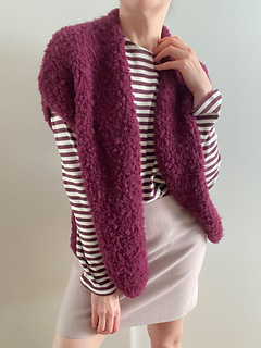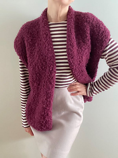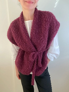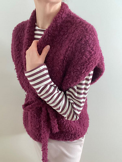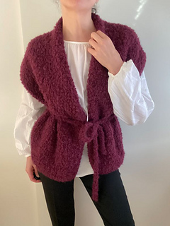 Gestrickt wird die Weste nahtlos von oben nach unten in einem Stück mit Zunahmen an der Schulterpasse. Alle offenen Kanten erhalten besondere Randmaschen, sodass kein nachträgliches Versäubern erforderlich ist. Der Saum wird mit einem I-Cord abgeschlossen. Der optionale Gürtel entsteht in der Double-Face-Technik und sorgt für ein feines, hochwertiges Finish.