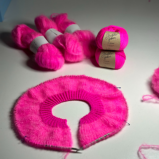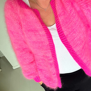 Fluffy Neon Cardigan er en løs og luftig cardigan som passer like godt til kalde vinterdager som over sommerkjolen. Jakken strikkes ovenfra og ned, og frem og tilbake og monteres til slutt.