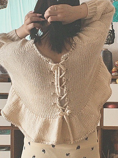 Finally, two separate I-Cords are knitted and threaded through the back to complete the sweater.