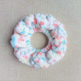 Pretty crochet scrunchies in a chunky velvet yarn.