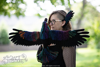 This pattern comes with instructions to make a Flying Raven! This pattern includes instructions for 1 raven body, 1 raven head, a beak, Feet/Legs, Head Feathers, Chest Feathers, an Open Flying Tail, Open Flying Wings, and an assembly section! This pattern features clear step by step instruction with a lot of row-by-row photos. The gauge is not crucial to the pattern as long as the stitches are tight enough to hold stuffing.