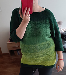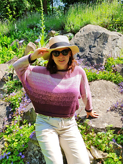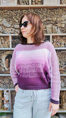 #FlyingCatBlouse is designed for 2 strands of fingering yarn held double (400m/437 yards,100g/ 3.72 oz), which gives DK weight.