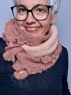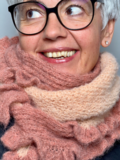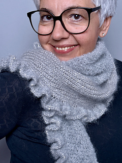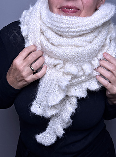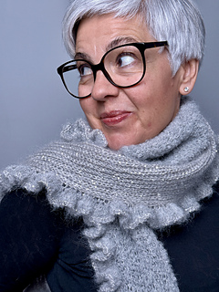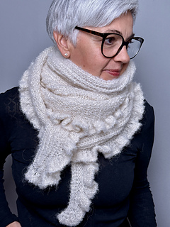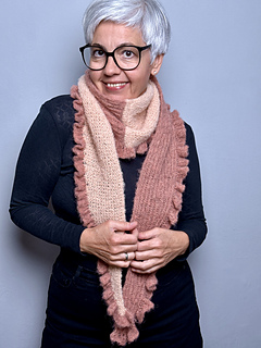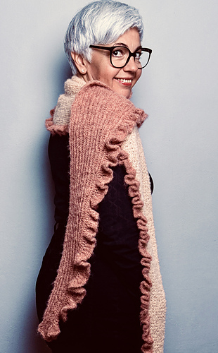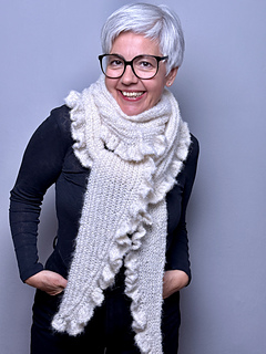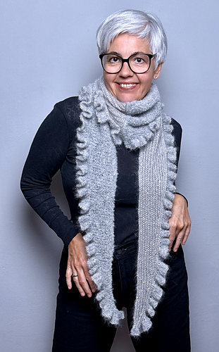 Mit »Foamy« Scarf strickst du dir ein fluffiges schmales Dreieckstuch. Den Scarf gibt es in zwei Größen. Romantisch und feminin ist die angestrickte Rüsche. Wahlweise kannst du das Dreieckstuch noch mit einem Paillettengarn sehr edel und glammy gestalten. Allen drei Tüchern ist das Bouclégarn gemeinsames Merkmal. Dadurch kreierst du dir einen Hauch an Flaum für Herbst und Winter.