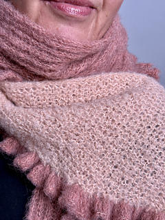 Es wird durchgehend zweifädig mit je einem Faden Bouclé und einem Faden Mohair gestrickt.
