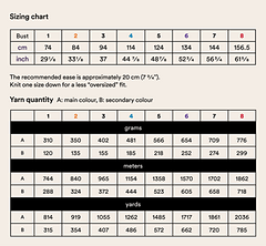 The recommended ease is approximately 20 cm (7 3/4’’). Knit one size down for a less “oversized” fit.