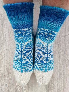 Folk Flowers Socks are the third in the series of colorwork socks with a botanical pattern inspired by Polish traditional designs. This time I reached for Lowicz patterns which are full of flowers and bright, lively colors. Socks are knit from toes up in the round, with a fleegle heel. The pattern flourishes with every round. These socks are perfect for strong, bright colors but they will also look great in more subdued colorways. This design is 2 in 1: you can also make socks using only the sole pattern.