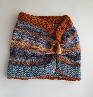 The cowl is knitted both, in the round and flat. A staggered cable stitch pattern is done without cable needle and I for one love that fact, don’t you?
