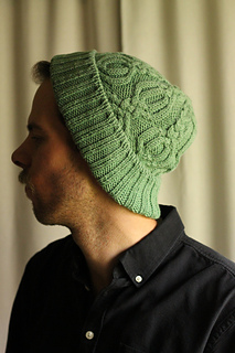 The Fool of a Toque begins with a tubular cast-on that leads into a generous brim with 2x2 ribbing. Then the all-over cable pattern is worked for the remainder of the hat, incorporating crown decreases into the cable pattern for a tidy crown.