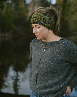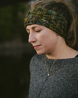 This relaxed, twisted stitch headband is designed to make beautiful use of those interesting single skeins or large leftovers you’ve been eyeing or saving up. With instructions for three different weights of yarn from Bulky to a Heavy Super Bulky, this headband is perfect for gift knitting.