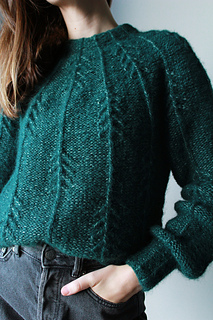 Construction: The Forest Vibes Sweater is worked from the bottom up. The body and sleeves are knitted separately in the round to the underarms, then joined for the yoke.