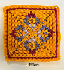 The Four Pillars Afghan Square is a free 12” x 12” overlay mosaic crochet pattern made with Medium Weight Yarn and a 6 mm (J) crochet hook.