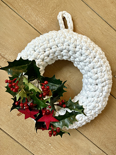 Zu verwenden als Tür-/Tisch-/Adventskranz. Schnell gehäkeltes last minute Projekt. Für jede Jahreszeit nutzbar, da die Dekoration auswechselbar ist.
