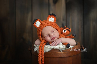 This crochet pattern comes with complete instructions for this adorable Fox Stuffy and matching Bonnet. The completed fox stuffy measures about 7” from the top of the ears to the bottom of the feet. The Bonnet in a simple bonnet but has a criss cross design in the front half of the bonnet. The criss cross is just to add some character and fun in the design. The bonnet comes in sizes from newborn up to child. This is a lovely set for any Mom to be, or any child for Easter, Birthdays or other special occasion.