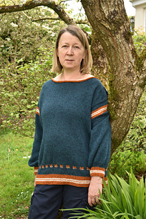 This fox jumper is loose fit. I guess you might call if a boyfriend jumper or a sloppy joe. I love this style of garment and designed it using one of my favourite shop-bought jumpers as a guide. I would advise you to stick to the given number of cast on stitches, but you could adjust the length of the body and sleeves to suit the wearer. The finished chest measurements may seem huge, but as you can see it looks great. I am wearing the middle size in the photos.