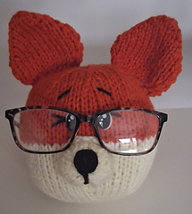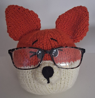 These spectacle heads for holding your glasses knit up quickly as they use 2 strands of dk yarn together.