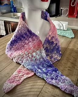 The pattern pictured is Size 2, as a typical Shawlette size. However, there are instructions in the pattern for a neckerchief or a larger shawlette size.