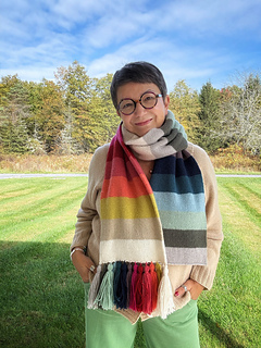 This collection includes four pieces: a scarf, a cowl, fingerless mitts, and a hat. Just as light fractures into countless hues, these accessories offer multiple ways to play with the extraordinary colors of mYak’s Tibetan Cloud. Whether worn together as a set or individually, each piece brings warmth, color, and personality to winter days and nights. The palette options range from bold and expressive to calm and understated, allowing you to choose the style that moves you.