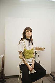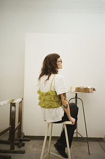 The top is knitted from the bottom up and finished with an I-cord.