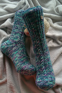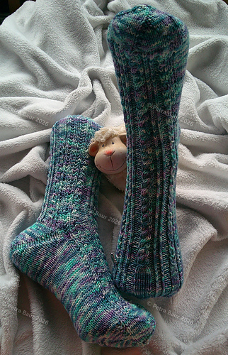 Die Anleitung ist für das Bündchen und das Muster und beginnt wie immer und gewohnt mit Nadel 4. Ferse und Spitze können nach Belieben gestrickt werden.