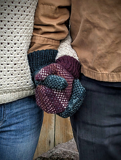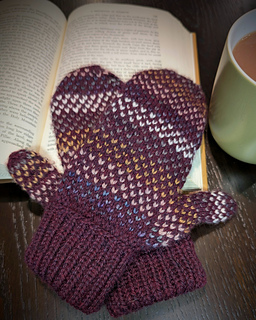 Yarn choices: This is a great pattern for scraps! When you’re diving in your yarn library, keep in mind that the mittens will wear best if the yarns are all a similar fiber content. To hold its shape and wear well, I recommend wool or wool blends of similar preparation. Cotton, alpaca, and other single fibers (not blended with wool) may not hold their shape well. DK weight yarn is ideal. But you might consider holding fingering weight yarn double to achieve a DK weight yarn.