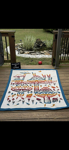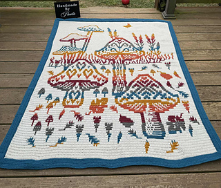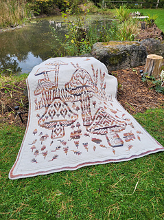 I was asked to design a mushroom blanket in memory of a special young man named Freddy. Freddy had a passion for drawing insects and naturals when he was a child, and in his teenage years, discovered all the funny ways to draw and colour mushrooms. I hope Freddy’s Mushroom Forest captures just a little bit of his love of art and all the natural wonder and peacefulness of the forest floor.