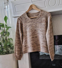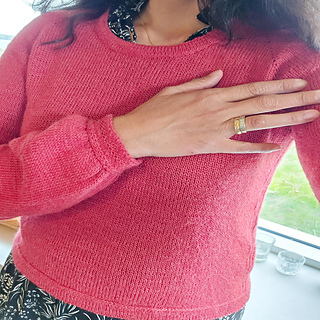 The blouse has a positive ease of 5-6½ cm 2-2½ inches. Measures can be adjusted as desired, in which case more wool may be needed. A schematic with all relevant measures and supporting videos are included.