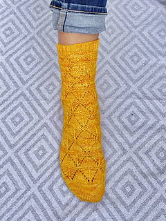 FREESTYLER socks are made from the cuff down and the gusset increases are added in two rows only - based on the concept that the distribution of the increases is very flexible as long as the proportion of increases and gusset rounds is maintained. This allows for the chevron lace pattern to expand from small through medium to large triangles. The pattern works best with solid or semi-solid yarns.